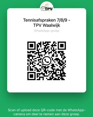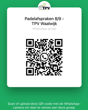 Ben je lid en wil je graag regelmatig padellen of tennissen? Heb je nog niet voldoende maatjes om een groepje te vormen? Meld je aan voor één of meerdere groepsapps. Zo kom je snel in contact met speelmaatjes. Ook leuk voor ervaren leden die eens met iemand anders willen spelen of die een invaller of extra speler nodig hebben. Let op: meld je alleen aan indien jouw sterkte past bij de groep. Zo blijft het voor iedereen leuk om met elkaar te spelen. Scan de QR code en word lid van de appgroepen.